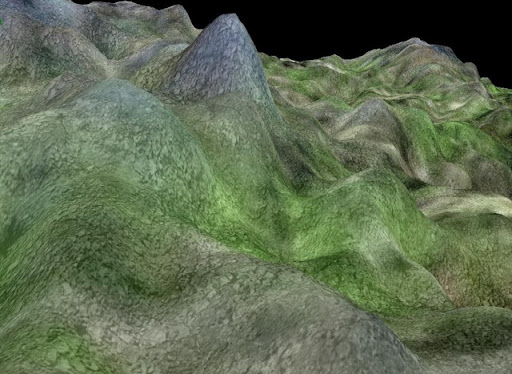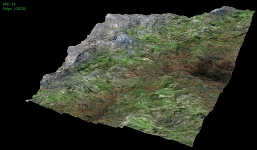 It's easiest to see the fuzzy noise on the black pit to the right. It's hard to tell from the images but it's worst when you move toward the terrain; pixels on the detail map seem to move about and make it look something like there's interference on a TV channel. When I release my game I'll just include a superficial aerial with it - problem solved.